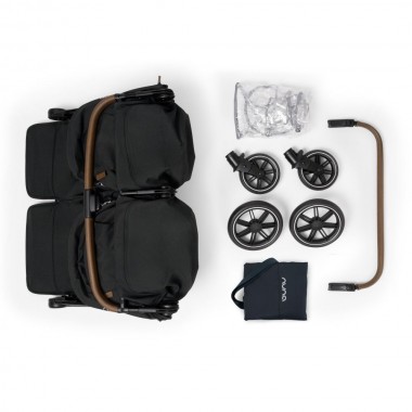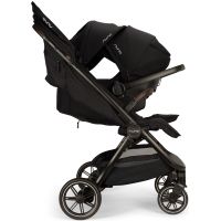 Wypinany i obrotowy pałąk przechodzi przez oba siedziska, ułatwiając wchodzenie i wychodzenie dzieci. Rączka i pałąk pokryte luksusową skórą ekologiczną nadają każdemu spacerowi stylu. Wózek TRVL dubl jest gotowy do użycia w systemie podróżnym i umożliwia zamontowanie dowolnego fotelika samochodowego dla niemowląt z serii PIPA™ na szerszym siedzeniu bez potrzeby stosowania adaptera, co zapewnia podwójną wygodę.