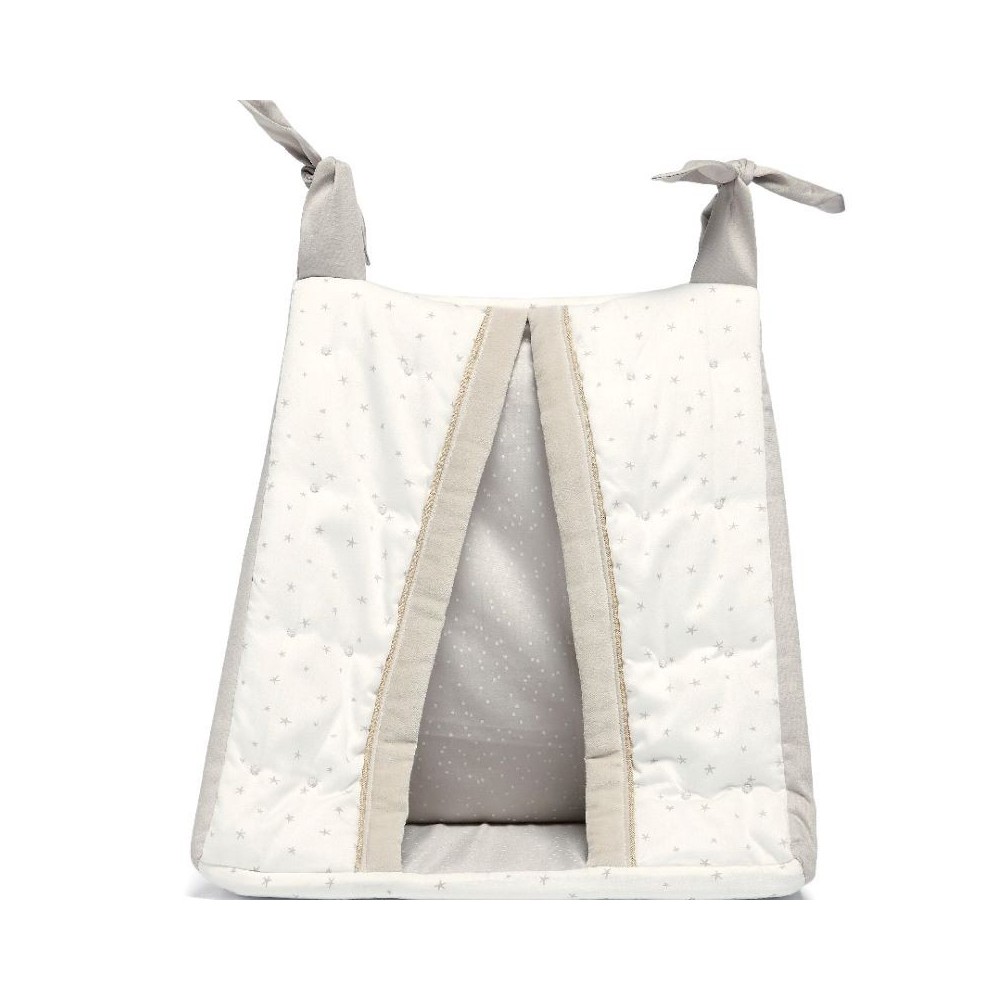 Stylowy i wygodny sposób na przechowywanie pieluszek i dziecięcych "skarbów". Przybornik na pieluszki stanowi część kolekcji Millie &Boris, dzięki czemu można estetycznie zaaranżować przestrzeń dziecka. Praktyczne wiązanie ułatwia montaż na łóżeczku dziecięcym.